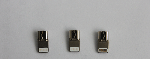 例如我們一個小小的充電頭,這就要由我們的焊接機來做啦,它能夠精準的,高密度的做出一個漂亮插頭,例如蘋果的插頭,是不是很神奇呢。