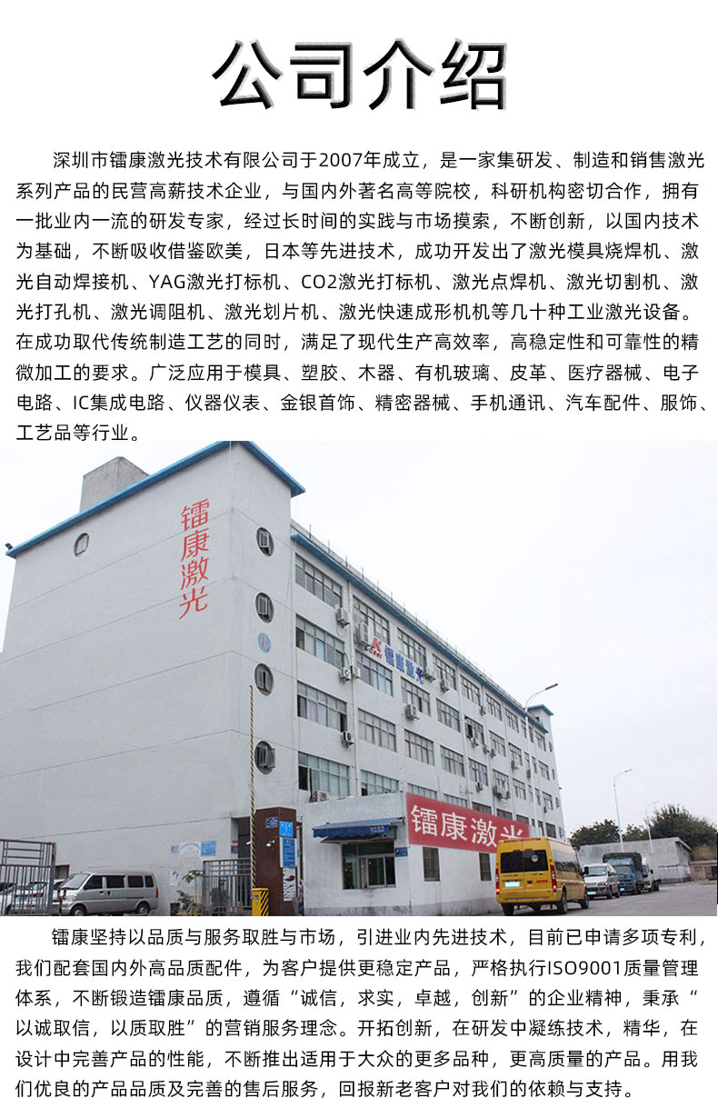 7、激光器通過光纜實現激光距離傳輸、結構緊湊。散熱效果好,無需龐大的水冷系統,只需簡單的風冷即可。在一定沖擊、震動、較高溫度或有灰塵等惡劣的環境下也能正常工作