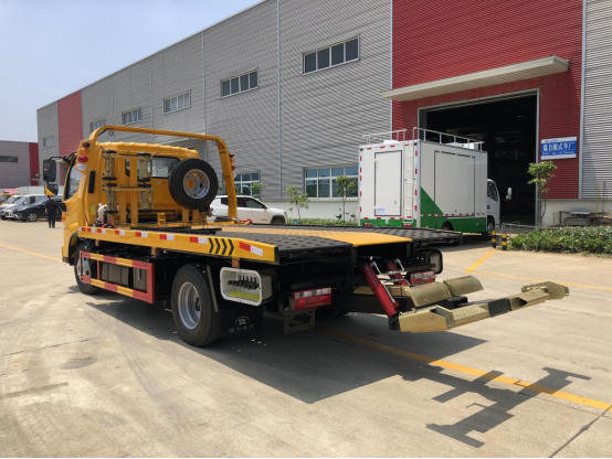 翻轉板:3噸上裝,4噸卷揚,21米鋼絲繩,3噸后拖臂,底板為花紋板(可選沖壓板),主板長4.1米,尾部液壓翻轉板,板長1米,雙側聯動操作,配四根捆綁帶,**小車一套,L型抱胎架一對,工具箱一個,LED工作照明燈一對,其余標配。
