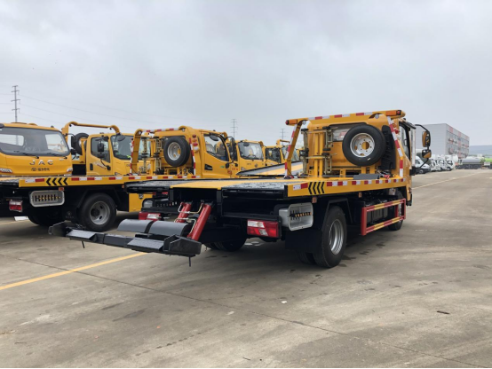 一體板:3噸上裝,4噸卷?yè)P(yáng),21米鋼絲繩,3噸后拖臂,底板為花紋一體板(可選沖壓板),板長(zhǎng)5.2米,雙側(cè)聯(lián)動(dòng)操作,配四根捆綁帶,**小車一套,L型抱胎架一對(duì),工具箱一個(gè),LED工作照明燈一對(duì),其余標(biāo)配。