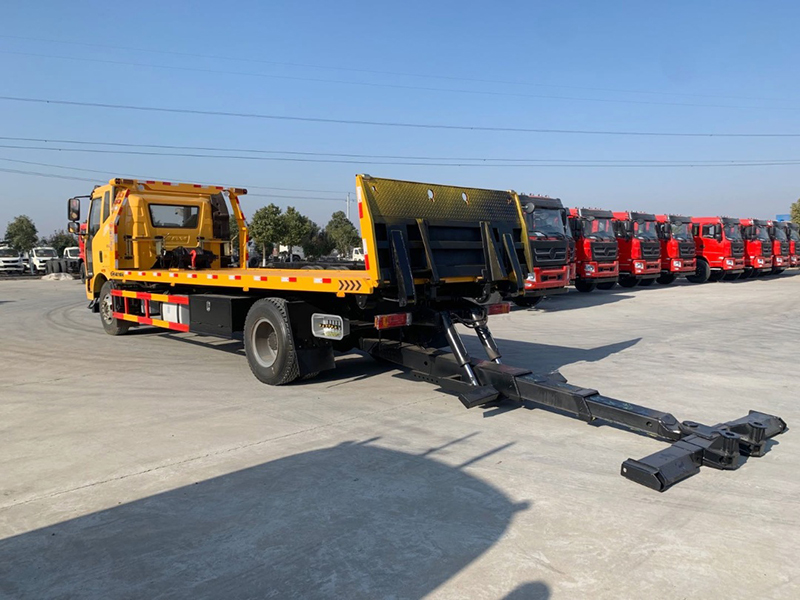 整車10噸上裝,10噸后托,10噸卷揚,平板長度為8.35米,帶尾部液壓翻轉,寬2.55米,底板為6mm厚花紋板,2套固定托叉,一套托叉座,6根綁帶,加裝氣管接頭