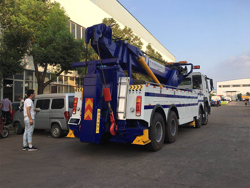 360度旋轉三節吊臂,分體三節托臂,液壓支腿肆個。分體式車廂,雙側聯動操作裝置,帶無線遙控,兩個25噸液壓絞盤,55米長鋼絲繩,一個洗手水箱,U型抱胎裝置壹套,拖車座壹套,托叉伍套,長排**帶喊話器壹套,后工作燈貳支,**燈總成壹套,**制動氣管總成壹套。
